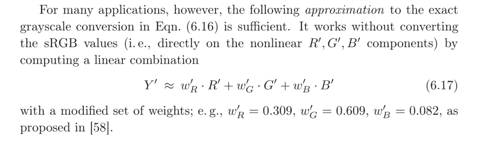 Y' \approx 0.309 \cdot R' + 0.609 \cdot G' + 0.082 \cdot B'.