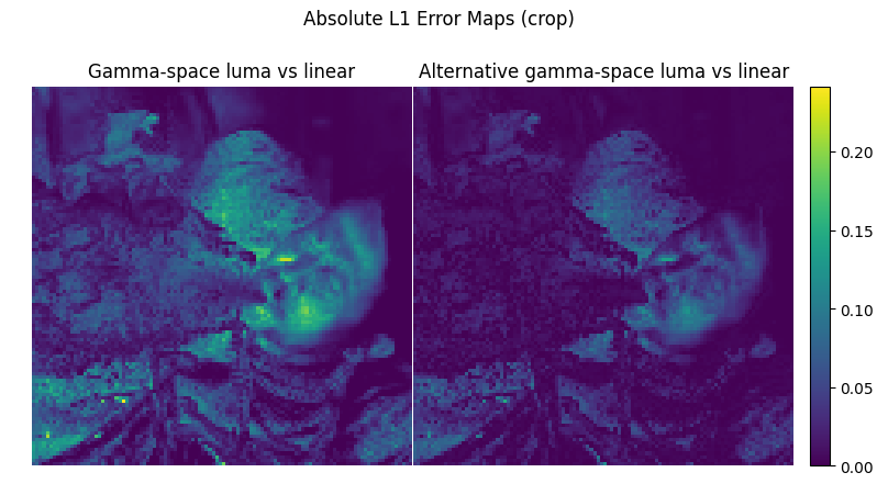 Yep, looks like there’s a difference. Here’s an error map with “Linear sRGB” as the ground truth: