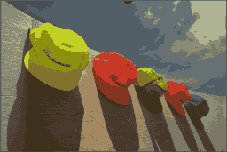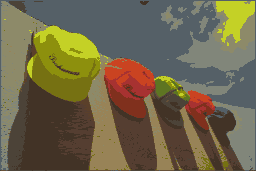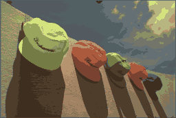 Using it sounds simple: convert each color from sRGB to CIELAB, run your median cut, receive a palette in CIELAB, and map each pixel to a palette color. Too bad it doesn’t help.